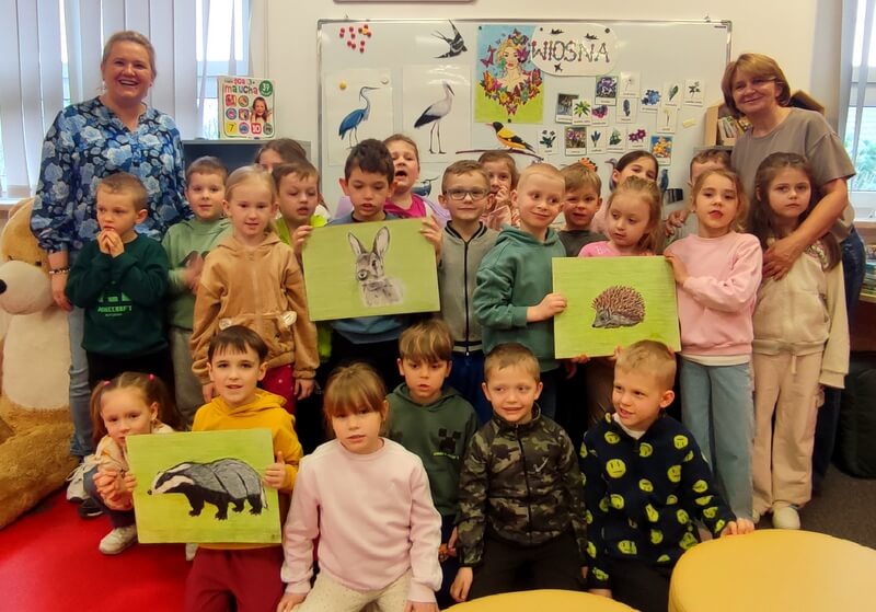 Poniedziałkowe (23.03.26) spotkanie z sześciolatkami upłynęło w prawdziwie wiosennej atmosferze. W południe odwiedziły mnie dzieci z grupy Tygryski, które przyszły z wychowawczyniami, paniami Ewą Daciuk i Martą Pamulską z Miejskiego Przedszkola Integracyjnego we Włodawie