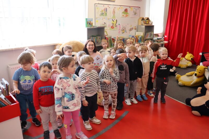 Poniedziałkowe (23.03.26) spotkanie z sześciolatkami upłynęło w prawdziwie wiosennej atmosferze. W południe odwiedziły mnie dzieci z grupy Tygryski, które przyszły z wychowawczyniami, paniami Ewą Daciuk i Martą Pamulską z Miejskiego Przedszkola Integracyjnego we Włodawie